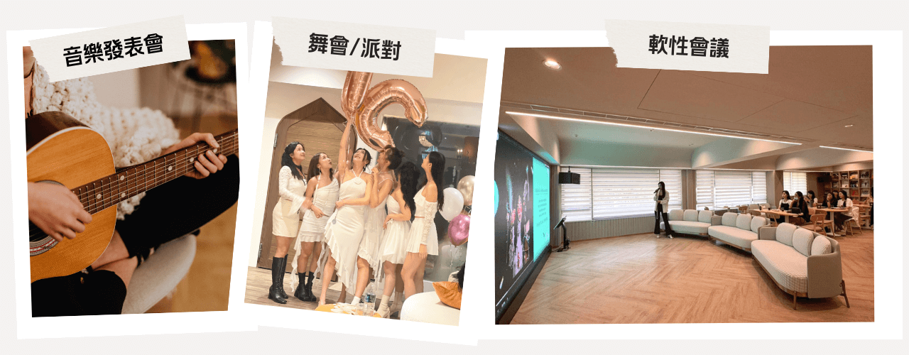 生日舞會、迷你婚宴、音樂成發、團隊工作坊...